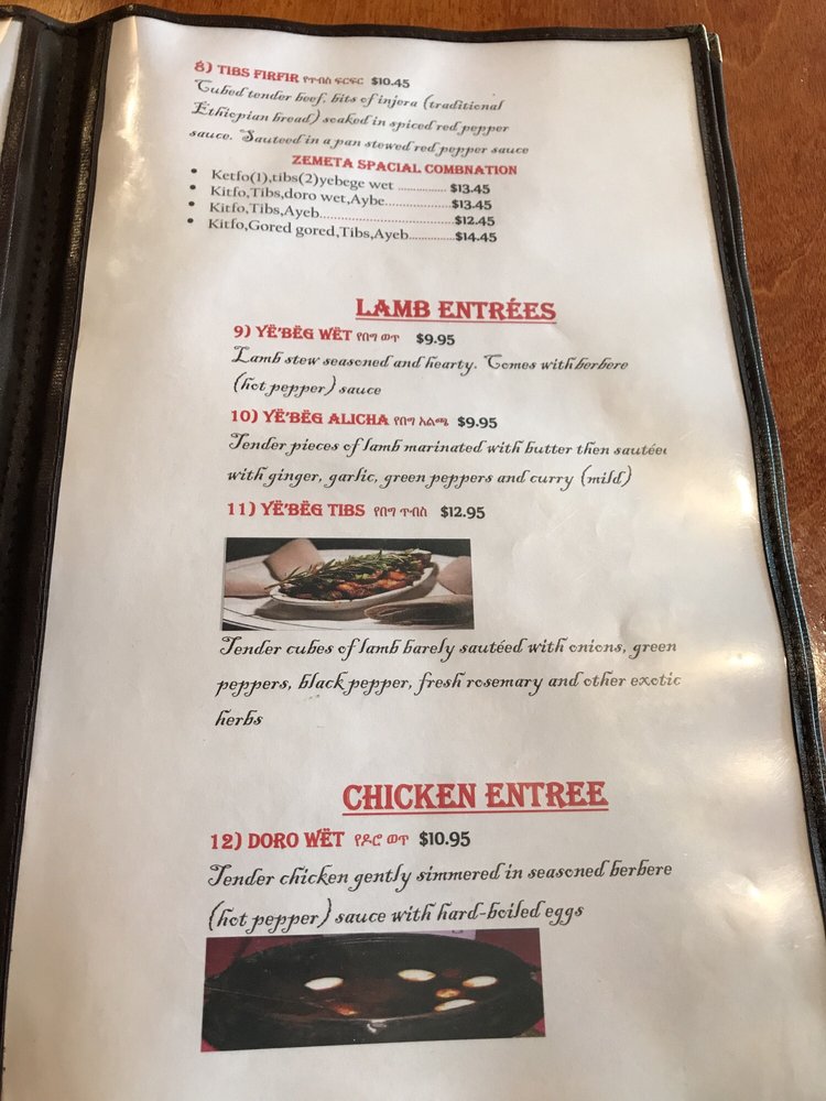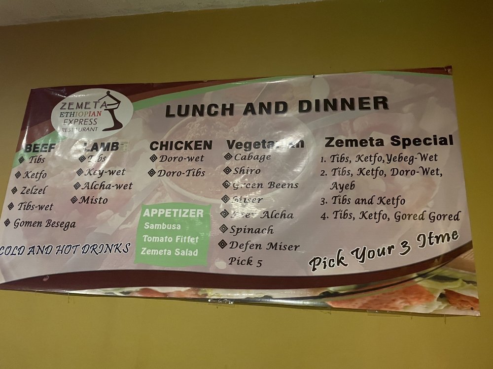 Zemeta Ethiopian Restaurant Menu